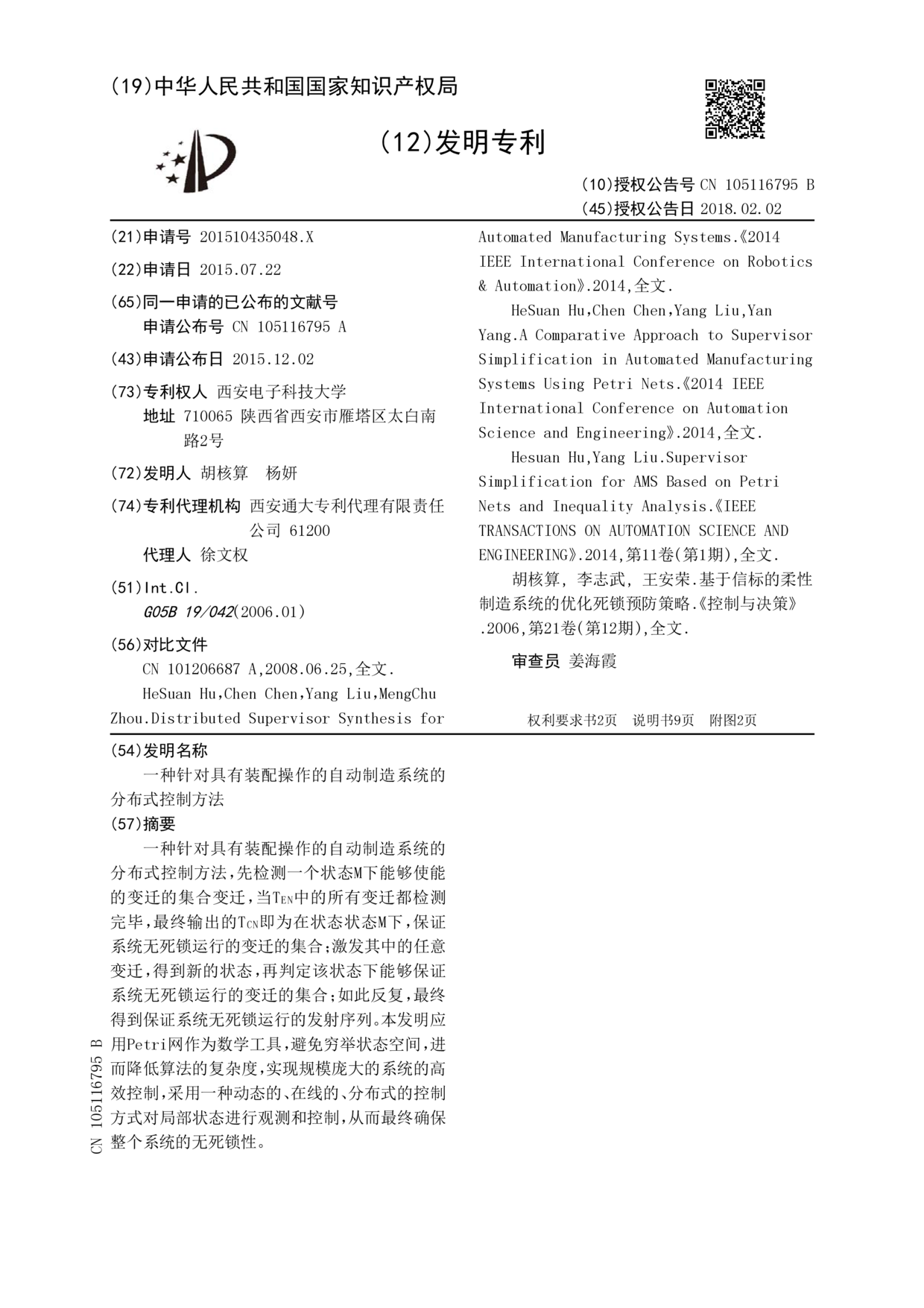 - 项目名称 一种针对具有装配操作的自动制造系统的分布式控制方法