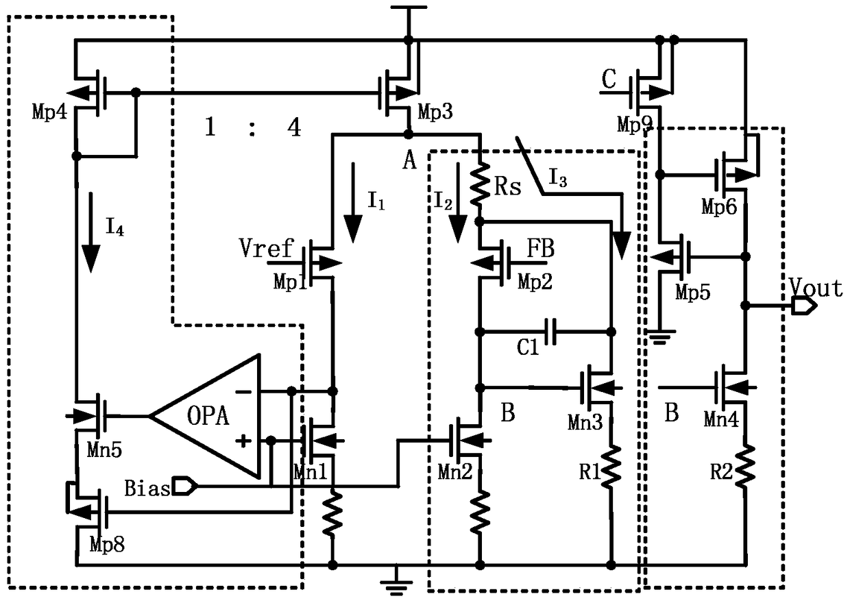 - 项目简介 本发明涉及一种低功耗线性跨导误差放大器,其包括偏置电路模块和采用局部源级负反馈的二级主运放模块,偏置电路模块包含嵌位OPA运算放大器、PMOS管Mp4、PMOS管Mp8和NMOS管Mn5;采用局部源级负反馈的二级主运放模块包括PMOS管Mp1、PMOS管Mp2、PMOS管Mp3、PMOS管Mp5、PMOS管Mp6、PMOS管Mp9、NMOS管Mn1、NMOS管Mn2、NMOS管Mn3、NMOS管Mn4、电阻R1、电阻R2、电阻RS和米勒电容C1。本发明公开的误差放大器具有以下有益效果:采用局部源级负反馈技术实现线性跨导;整个线性跨导误差放大器在亚阈值区工作减小静态电流,实现低功耗工作。