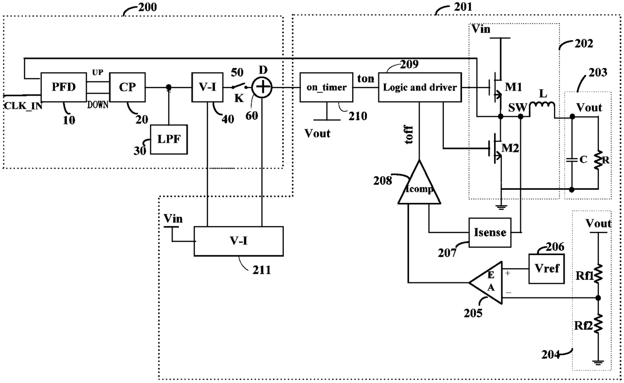 - 项目简介 本实用新型涉及一种用于AOT控制模式DC转换器实现外同步功能的电路,鉴频鉴相器的输入端外接外部脉冲信号;鉴频鉴相器的输入端连接至转换器基本电路;鉴频鉴相器的输出端连接电荷泵;电荷泵连接低通滤波器和第一线性电压转电流电路;第一线性电压转电流电路连接第二线性电压转电流电路;第一线性电压转电流电路连接开关;开关连接电流加法器;电流加法器连接第二线性电压转电流电路;电流加法器输出端连接转换器基本电路中的计时器的输入端。本实用新型在不增加内部振荡器和保持AOT控制模式DC/DC转换器基本电路结构的基础上也可实现外同步功能使用方便,应用广泛。