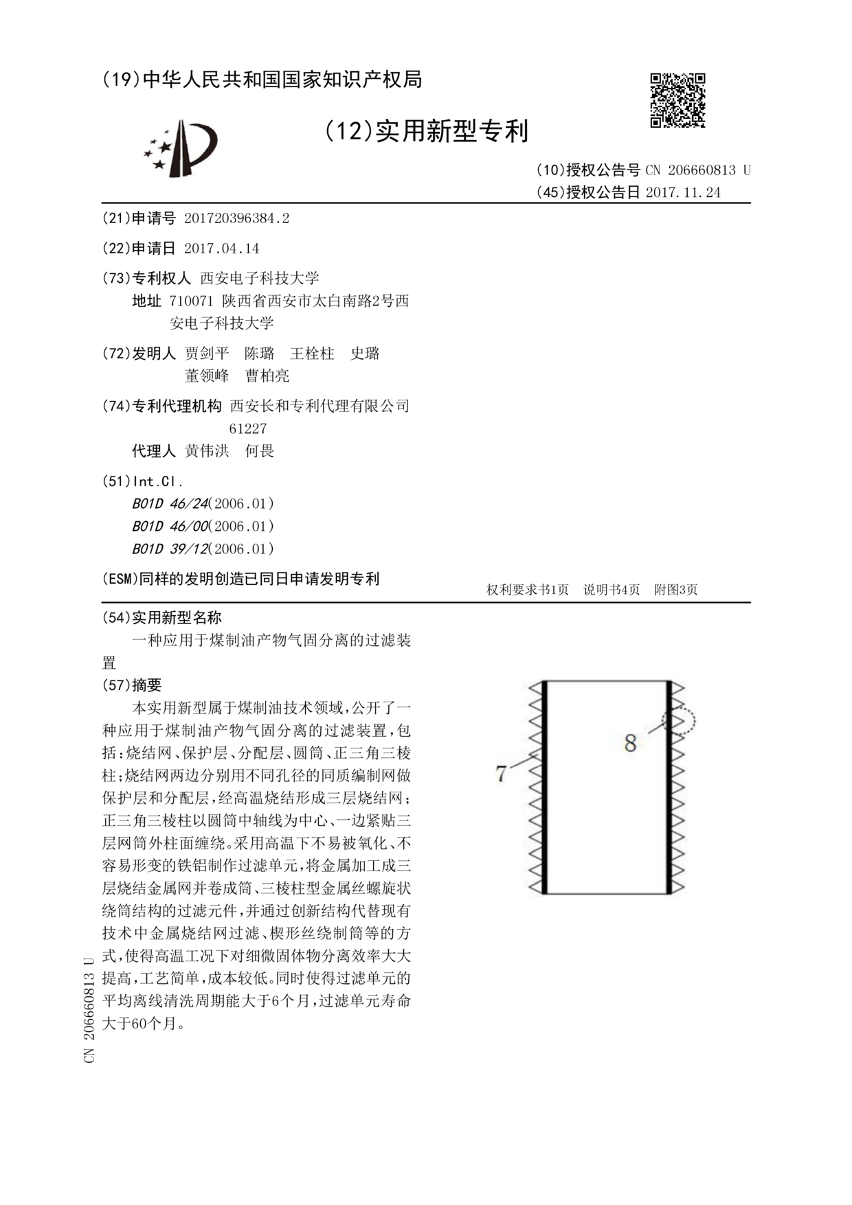 - 项目名称 一种应用于煤制油产物气固分离的过滤装置