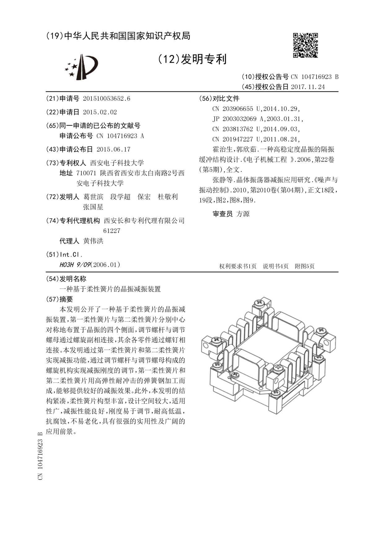 - 项目名称 一种基于柔性簧片的晶振减振装置