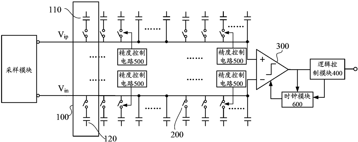 - 项目简介 本发明公开一种宽工作电压的可配置异步逐次逼近型模数转换器,其中:电容单元包括与第一上极板连接的上排电容和与第二上极板连接的下排电容;采样模块产生第一输入信号以及第二输入信号;比较器第一输入端通过第一上极板接入第一输入信号,其第二输入端通过第二上极板接入第二输入信号;逻辑控制模块根据比较器输出的比较结果,按照预设规则控制上排电容和下排电容在各自上极板处的电压;至少一个电容单元,其上排电容和下排电容分别通过各自的精度控制开关与对应的上极板连接;每个精度控制开关对应连接有精度控制电路;精度控制电路根据外部控制信号导通/断开其所连接的精度控制开关。本方案的模数转换器工作精度可调,适用性高。